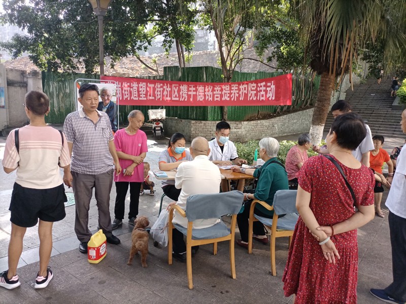 日前,陶乐养老德铭菩提养护院携手攀枝花炳草岗街道望江街社区,在社区内开展健康咨询活动,免费为长者检查身体、测量血压、血糖,讲授健康知识,为社区的长者撑起健康保护伞。