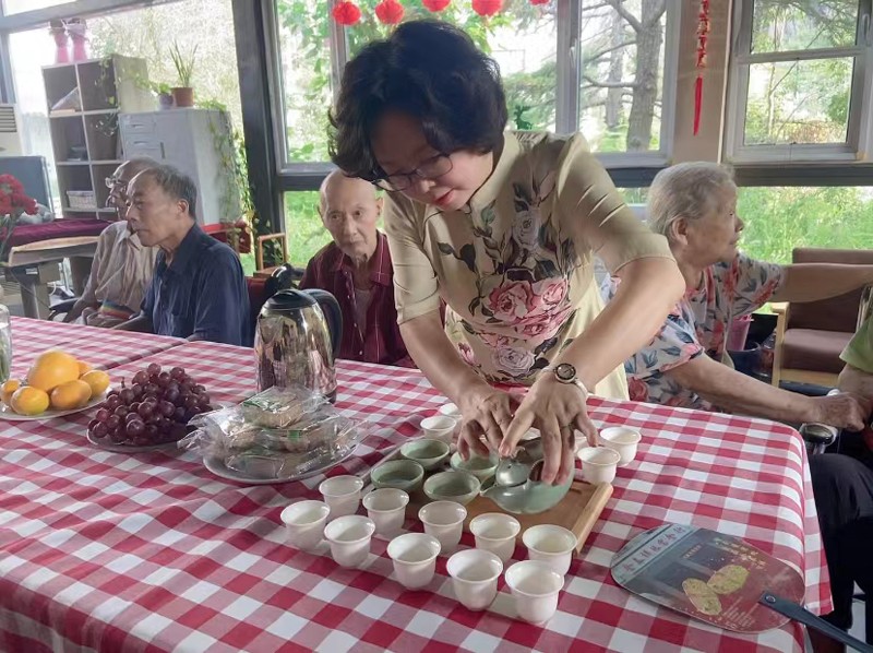 西青分院的工作人员还给院内长者准备了功夫茶,不仅品尝了香茗,还有视觉享受。