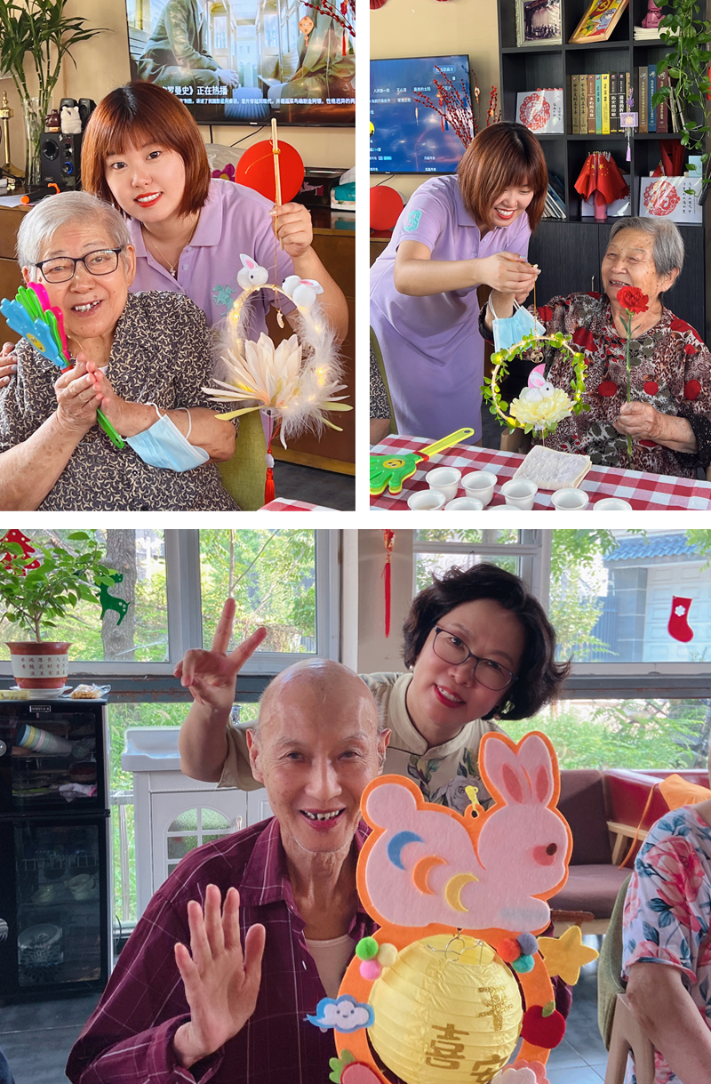 中秋也少不了应景的灯笼。今年给长者们准备的灯笼是院里工作人员亲手制作,不同于售卖的雷同造型,手工制作的灯笼造型又走心又精致,爷爷奶奶们大呼喜欢,各个爱不释手。