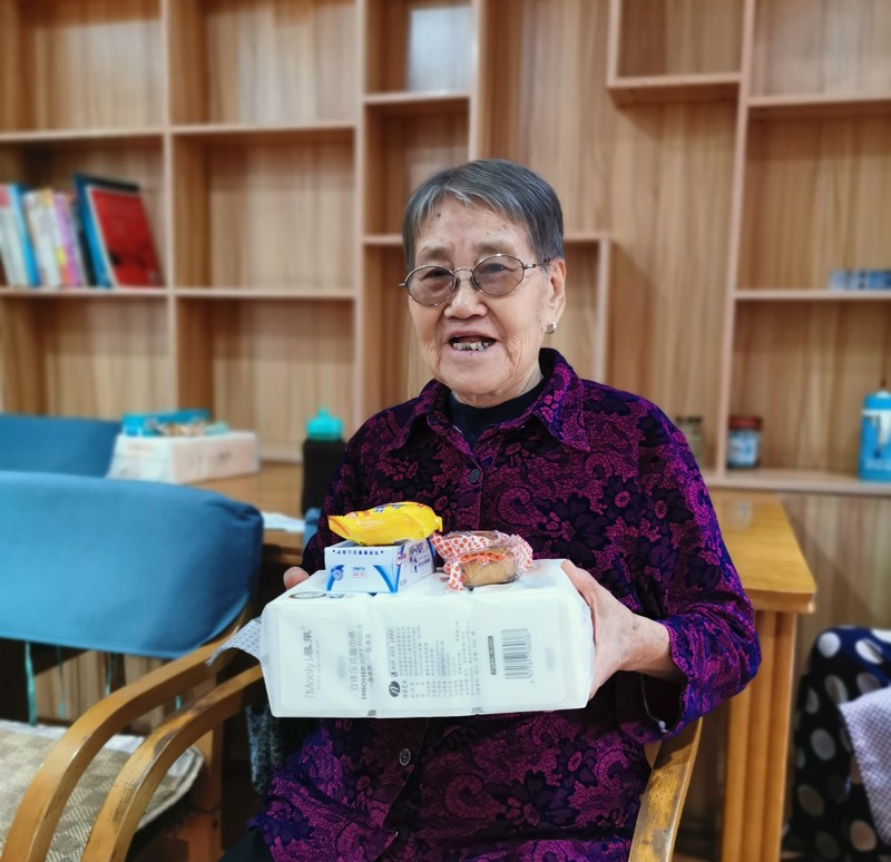 朱院长给大家准备了美食和小礼物,亲手交到各位长者手里。