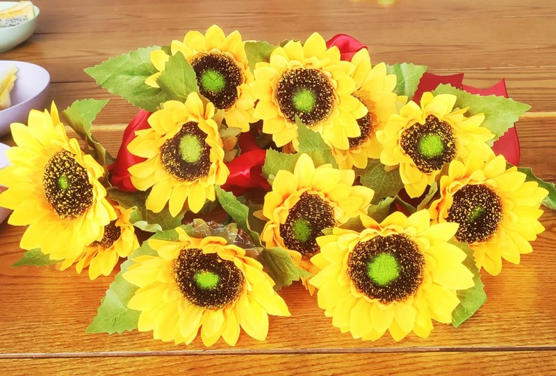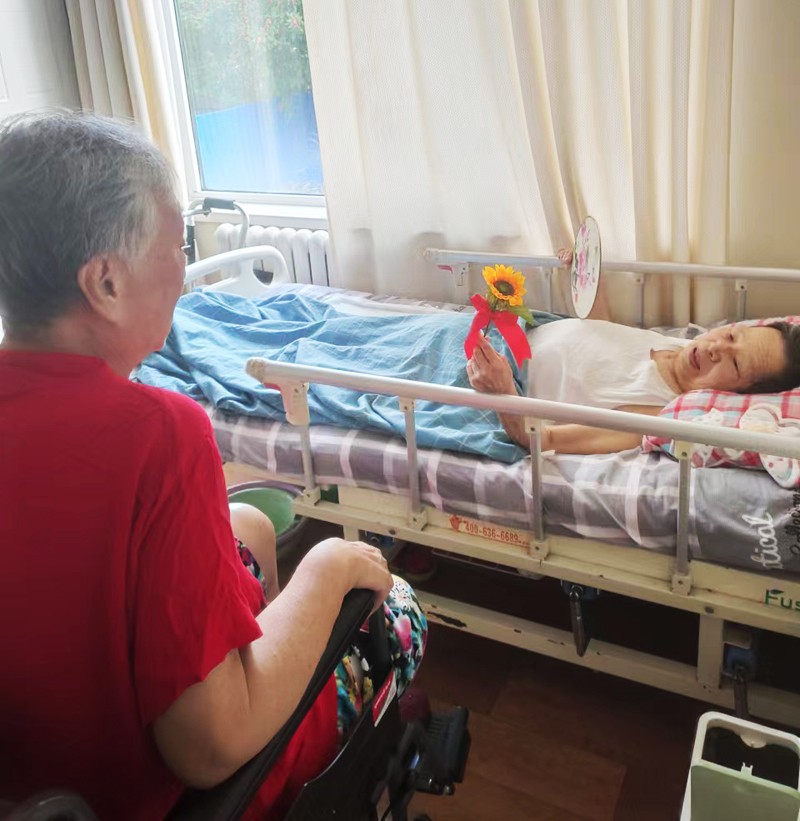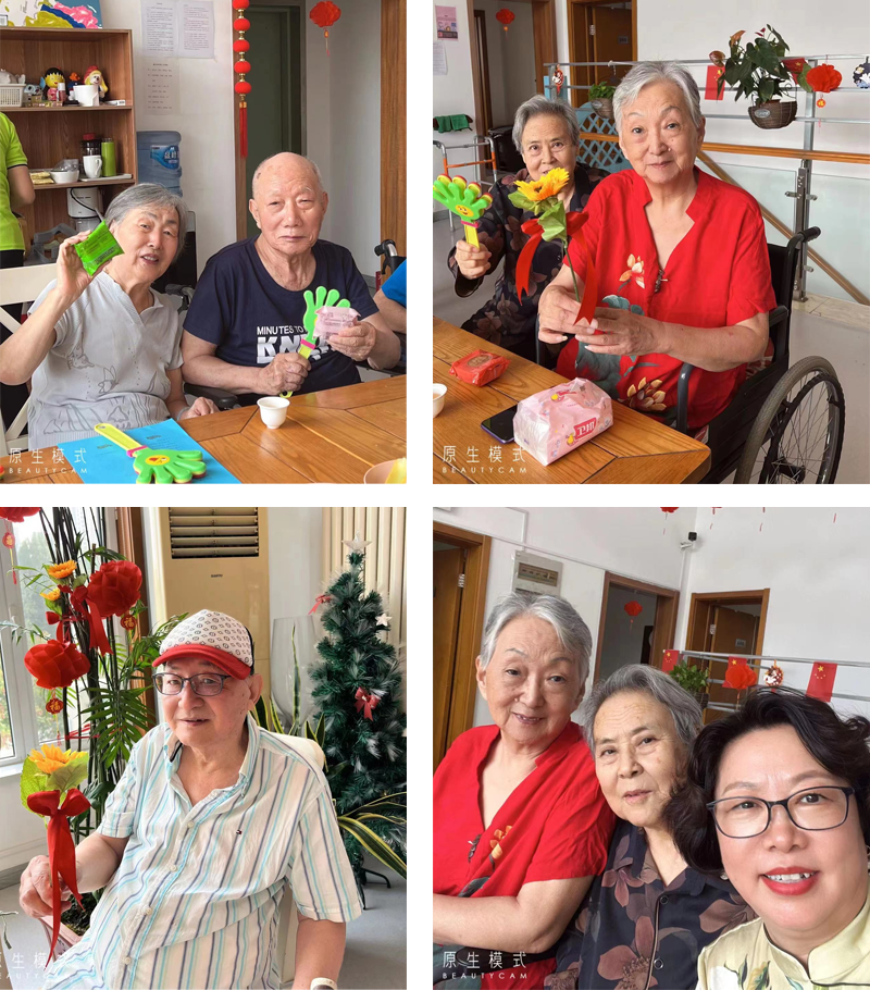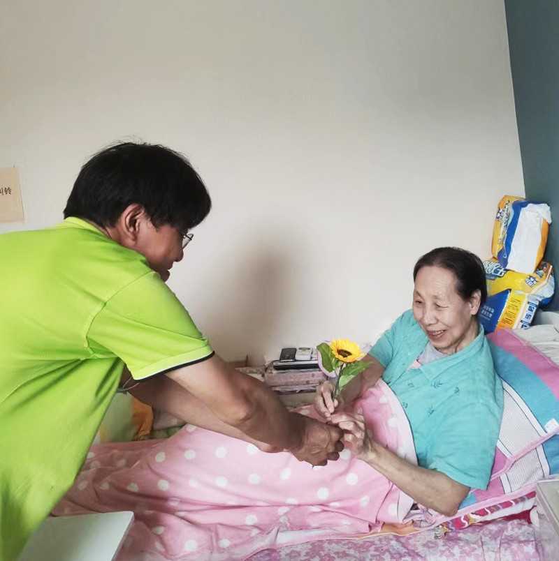 院里还准备了节日小惊喜,一枝枝向日葵热情、灿烂,给院里的每一位长者带来了温暖和阳光。