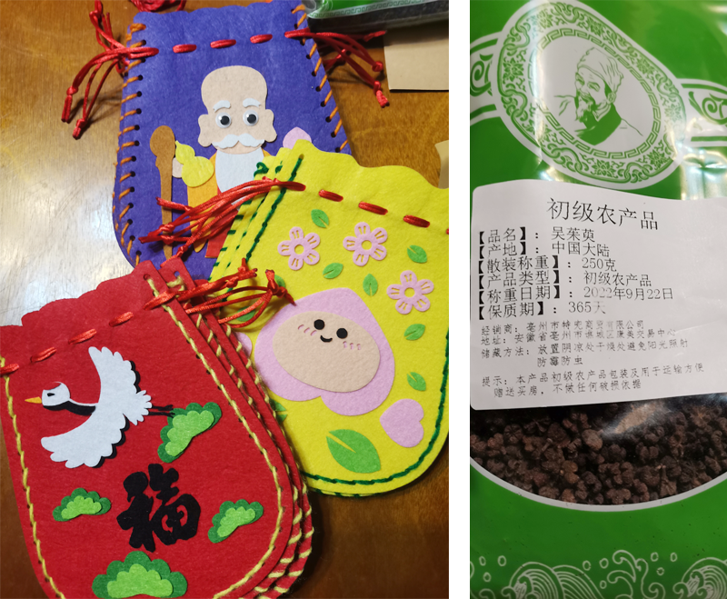 并且,任院长亲手制作了茱萸香囊,送给每一位院内长者,重阳节时采茱萸、制香囊佩带,俗信辟除恶气而御初寒,借此寓意送给长者一份好兆头。