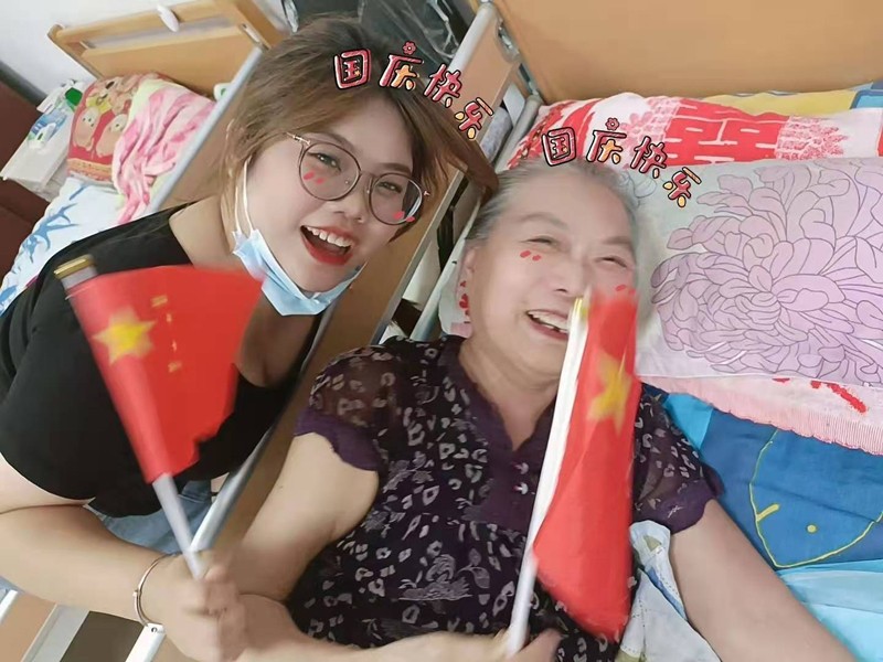 双节期间,正值天津滨海地区疫情严峻,在这样的大环境下,虽然陶乐养老滨海分院封闭管理,但大家对节日的期待和仪式感一分不减,工作人员为长者们布置着节日气氛,还带领老人共同为祖国母亲送上了最真挚的祝福。