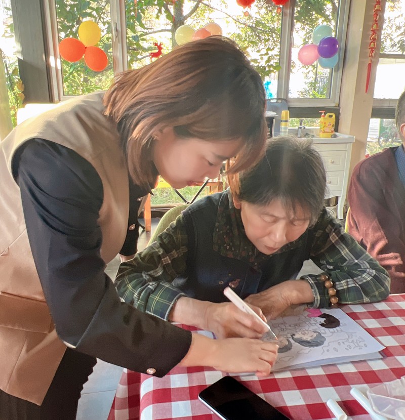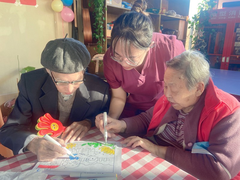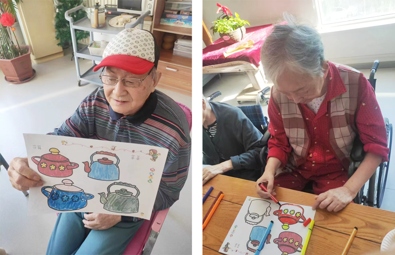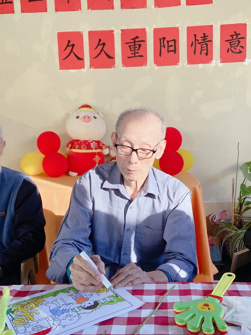 而在重阳节的时候,更是开启是趣味的手工绘画活动。工作人员带着长者动动手指,共同描绘出美丽画卷。
