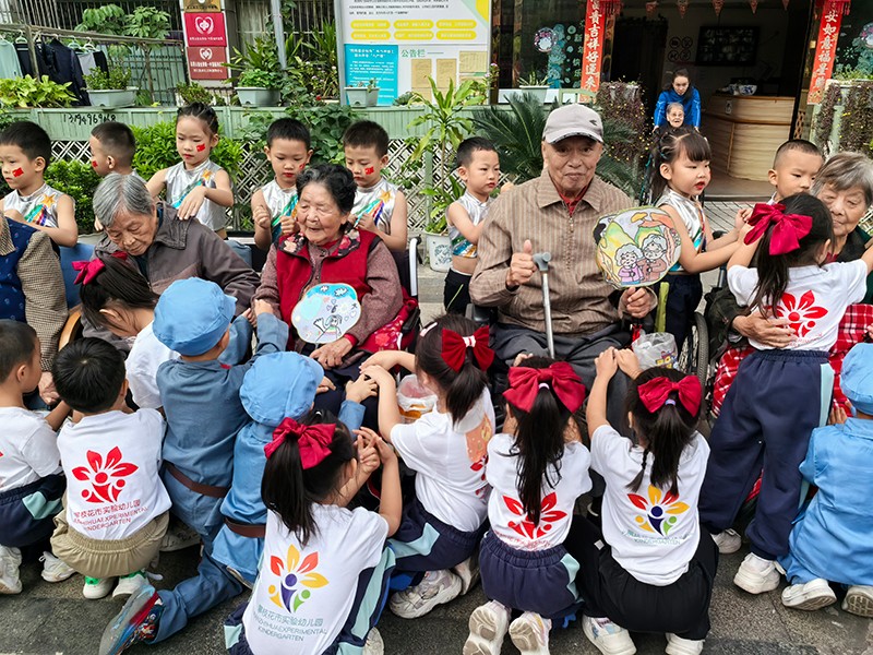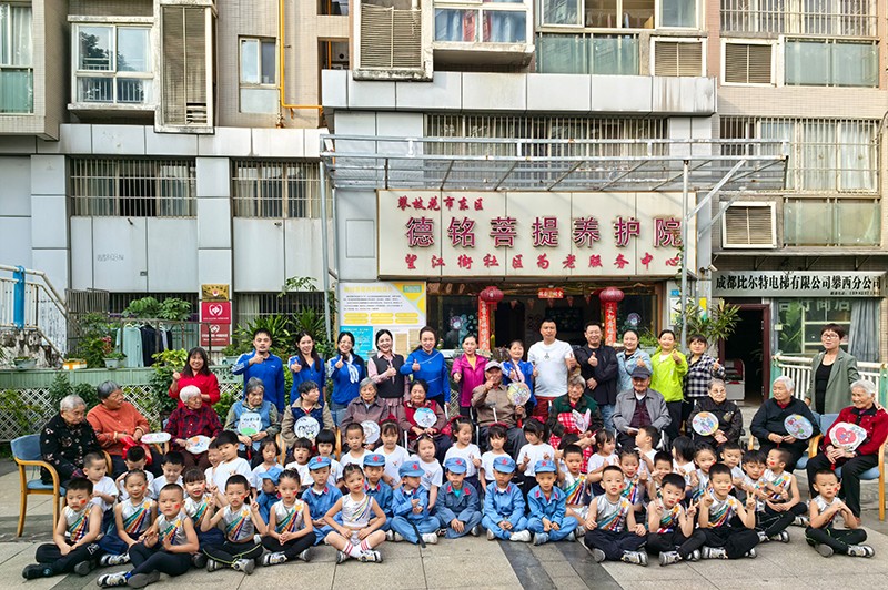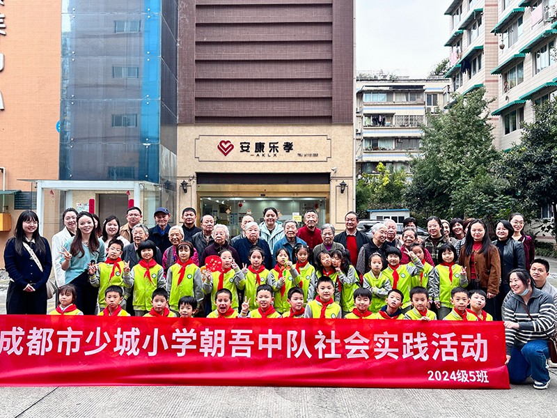 成都市少城小学朝吾中队的学生们来到成都安康乐孝康养中心,陪伴爷爷奶奶共度重阳。活动现场还进行了线上直播,让不能到场的家属也能实时感受节日的温馨氛围,见证长者们幸福的笑容。