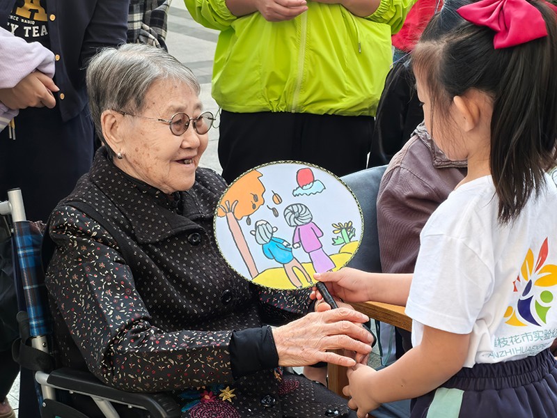 攀枝花德铭菩提养护院里刁爷爷的女儿作为市实验幼儿园的负责人,更是注重小朋友尊老爱幼传统文化的培养,在重阳节之际带着市实验幼儿园人民街园区的小朋友一起来到养老院看望爷爷奶奶们。孩子们表演节目、赠送手工礼物、陪老人拉家常,展现了尊老爱幼的良好家风。