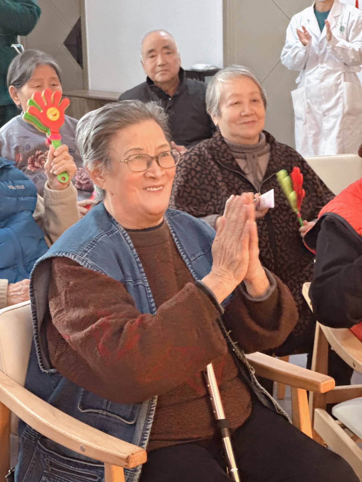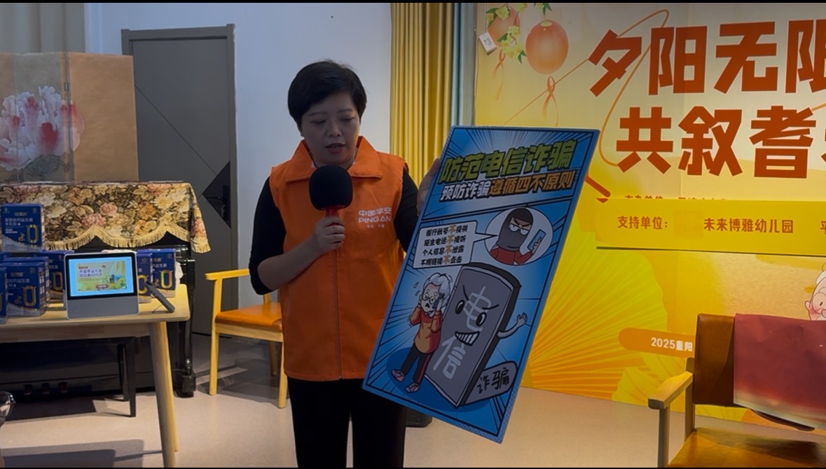 平安人寿天津分公司的志愿者们也带着礼物来到院里,他们为长者带来了精彩的戏曲表演,与长者们一起做互动手指操、线上问诊,还为爷爷奶奶带来了实用的反诈知识。