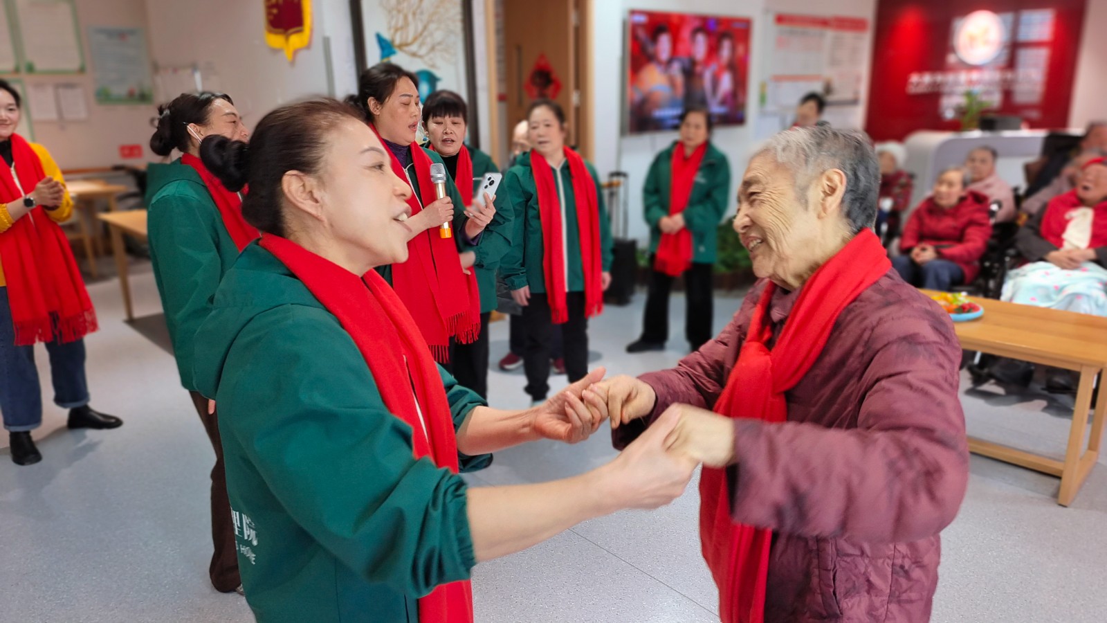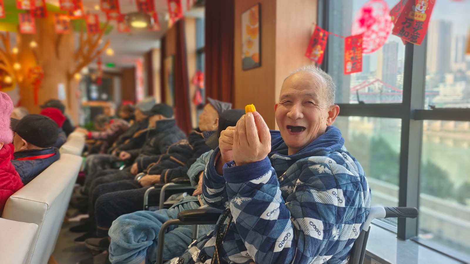 山城重庆,年味热辣。四恩乐龄养护院的员工们早早排练起节目,周院长的一展歌喉更是掀起高潮。麦克风递到长者手中,大家你一首我一曲,没有舞台的距离,只有心与心的贴近。