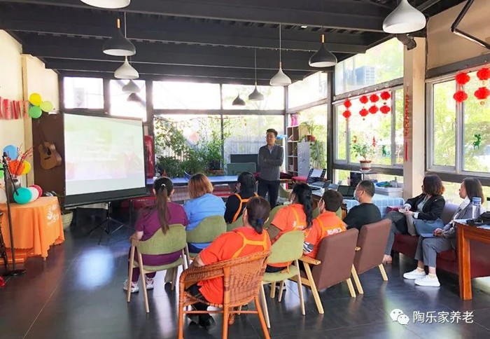 陶乐家创始人为新成员们讲解了我们工作的意义和价值就是解决长者在面临病痛、脆弱、孤独等问题,贴⼼为⽼,帮助⽼⼈提⾼⽣活品质;并且为家属分担解忧,替子女分担压⼒,解除忧愁。